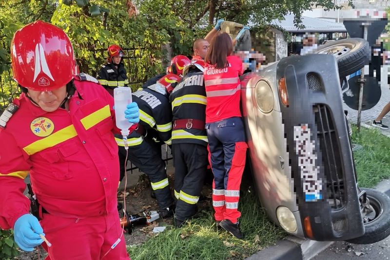 Giurgiu. Coliziune între două autoturisme pe şos Bucureşti. Unul dintre autoturisme s-a răsturnat