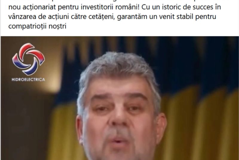„Dragi români, am plăcerea să vă informez că de la începutul noului an, compania energetică de stat Hidroelectrica a deschis oportunități de investiții pentru cetățenii români (...). Plata profiturilor este garantată de stat”, spune Marcel Ciolacu în videoclip.
