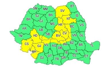 Administrația Națională de Meteorologie a extins codul galben de vreme severă.