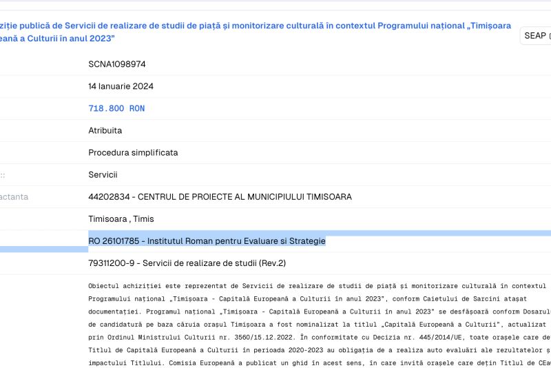 Ancheta aduce în atenție faptul că proiectul cultural pentru care s-a atribuit „monitorizarea culturală” a avut o vizibilitate modestă în România și pune sub semnul întrebării justificarea acordării acestui contract, în special având în vedere că proiectul a fost finalizat.