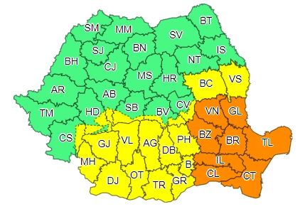 Avertizări transmise de Administrația Națională de Meteorologie (ANM)