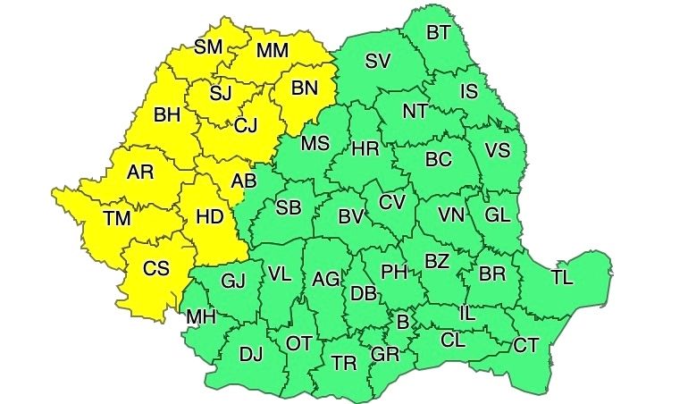 ANM a emis o atenționare cod galben de vreme severă, în mai multe județe din țară