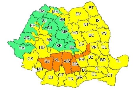 Codurile galben și portocaliu de fenomene extreme au fost actualizate