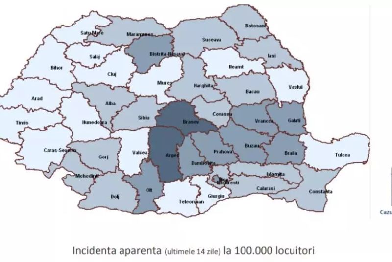 În ultima săptămână, cele mai multe cazuri de infectare și decese, jumătate din cele raportate la nivel național, au fost în județele Braşov, Argeş, Prahova, Galaţi, Dâmbovița, Suceava și București