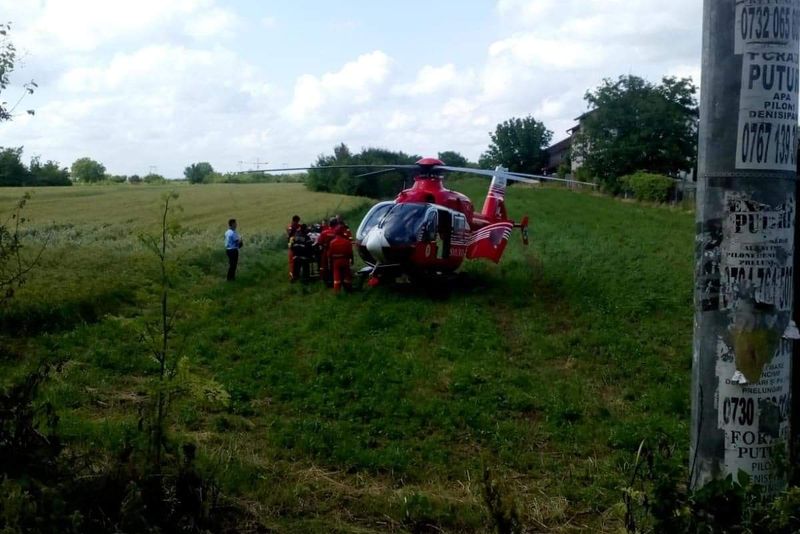 Un tir încărcat cu nisip s-a răsturnat pe DJ 601. Intervenție cu elicopterul SMURD
