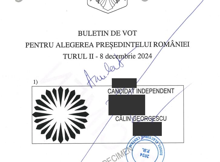 CUM ARATĂ BULETINUL DE VOT PENTRU FINALA PREZIDENȚIALĂ DIN 8 DECEMBRIE, ÎNTRE GEORGESCU ȘI LASCONI