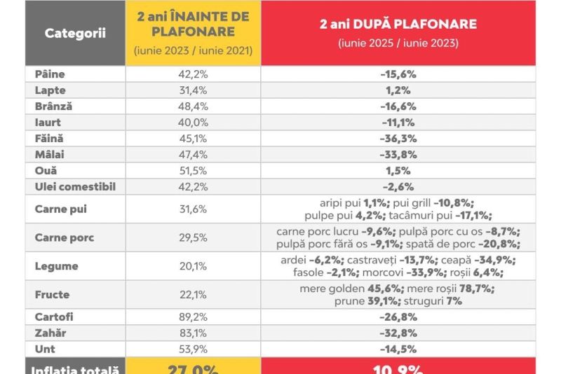 "Renunţarea la plafonarea adaosului comercial în cazul alimentelor de bază, care ar urma să fie ridicată de la 1 octombrie. Voi cere urgent clarificări partenerilor de guvernare, pentru că este o decizie pe care nu am discutat-o în Coaliţie şi cu care PSD nu poate fi de acord! Specialiştii spun că ridicarea plafonării ar creşte imediat inflaţia cu încă 2-3 puncte procentuale, consumul ar scădea, iar puterea de cumpărare a românilor se va prăbuşi!”, a declarat Grindeanu, într-o postare pe Facebook.